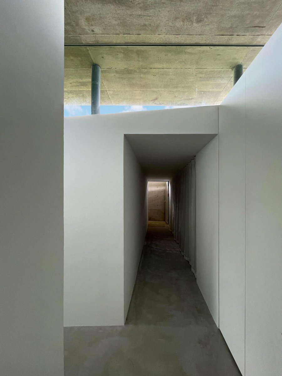 コンクリートの屋根の下にあるスロープを降りていくと、室内にアクセスすることができます。